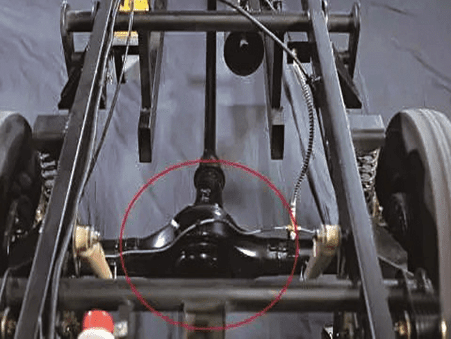 中軸技術源起何方?萬虎工業(yè)為何執(zhí)著開發(fā)中軸技術呢?目前市面上的三輪摩托車基本以偏軸三輪車為主,輸出傳動軸位置偏向左側,輸出配重難以做到均衡,這對整車行駛過程中的平穩(wěn)性和舒適性提出很高的要求,甚至會影響到轉彎時的安全性。其實軸傳動輸出的問題早已在汽車行業(yè)解決,那就是發(fā)動機動力輸出,后橋1:1配置,于是萬虎工業(yè)率先提出在三輪摩托車使用中軸的概念,并利用自身的研發(fā)優(yōu)勢付之為現(xiàn)實。如圖所示:
